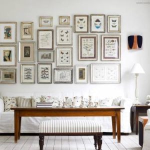 Начнём с самого простого — множество красивых рамок с семейными фото, картинами или поделками детей легко объединятся в интересную композицию на стене.
